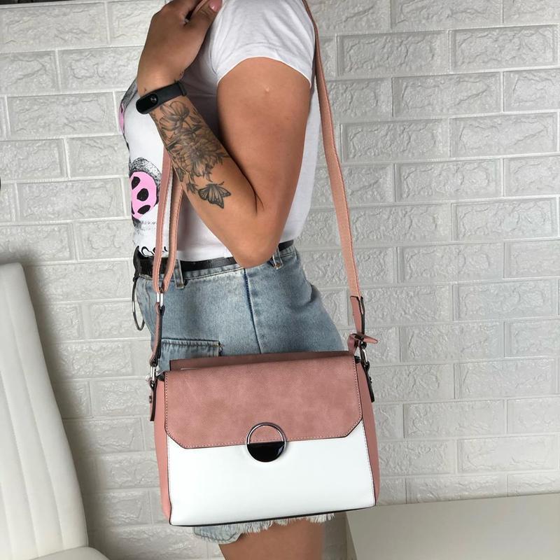 Середня сумка на широкому ремінці Розмір 20/26 см Три відділення Довжина ремінця 140 см Кольори : рожевий , блакитний Ціна 790 грн