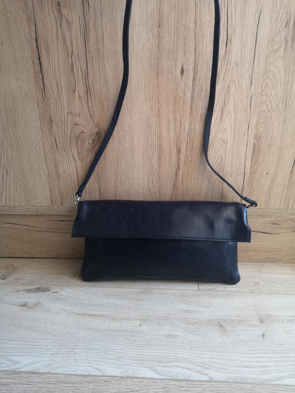 Шкіряна сумка 0714 у відмінному стані. Закривається сумка магнітними заклепками, ззаду сумки є великий кишеню, всередині сумки два окремих відділення і кишеню на блискавці. Розмір : Висота 15см. Ширина 28см. Довжина ручки 94см.