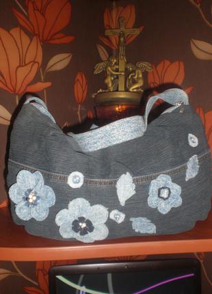 Джинсова сумка -мішок на довгій ручці)