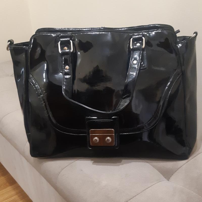 Лакована екошкіра. Вмістка(43×30, ширина дна 15). На замку, одне відділення, всередині три карманчики. Спереду карман на закльопці. Можна носити і на плечі, і в руках.