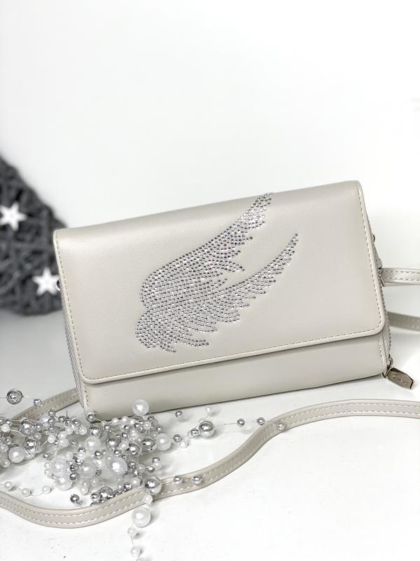 сумочка через плече. Оздоблена стразами. Дуже красива і практична. Можна носити як клатч. В наявності п'ять кольорів Розмір 13*20*4