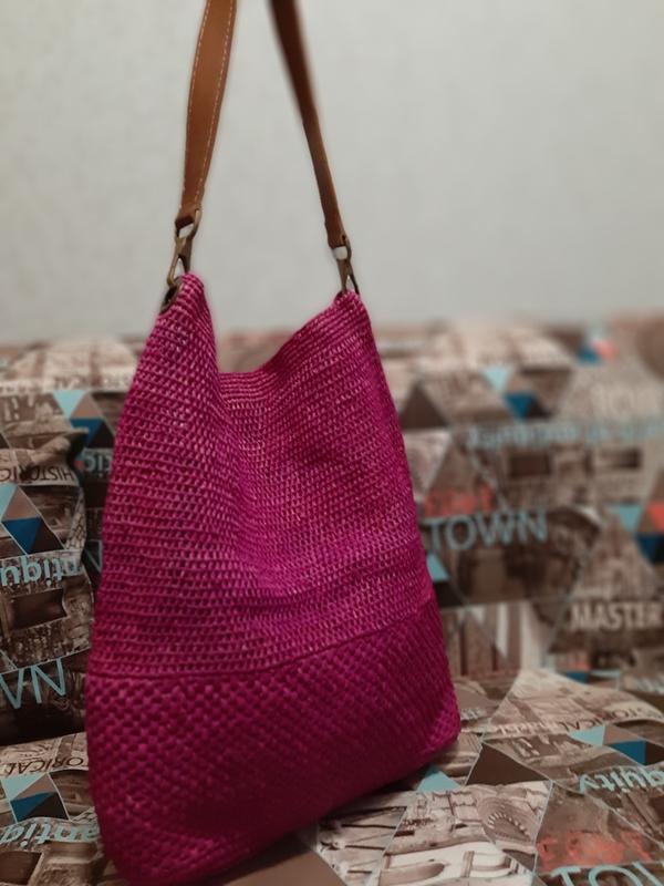 Лiтня дуже гарного кольору еко - торба. Ручка -натуральна шкіра.Стильна,дуже містка.Розмір:45см×40донце-37