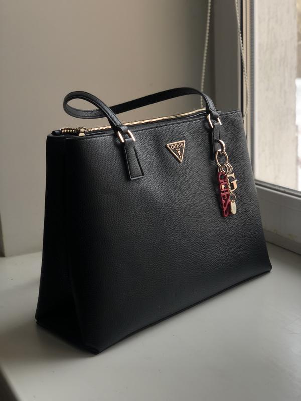 Абсолютно новая сумка Guess, пыльник, пакет, бирки. Подарили, не подошла мне. Цена новой 3145 грн. Моя цена 2400 грн. https://md-fashion.com.ua/store/zenskaa-cernaa-sumka-guess-hwvg7742230-cernyj Фурнитура: золотистая Декор: логотип Размер: 38х28х14 см Две несъемные нерегулируемые ручки высотой 25 см Съемный брелок с подвесками и логотипом Отделения/карманы (внутренние): два отделения, пять карманов Отделения/карманы (внешние): одно отделение, один карман Цвет: черный