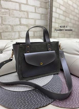 Код 0215-1. Матеріал: Нат.замша / Штучна шкіра. Україна 🇺🇦. 28 см ширина по дну. 21 см висота. 10,5 см дно. Одне відділення на блискавці, всередині 2 кишені зі шкірозамінника: один відкритий, а другий на блискавці. В комплекті знімний плоский ремінь. Довжина ременя 100 см, ширина 3,5 см. Ціна 530грн