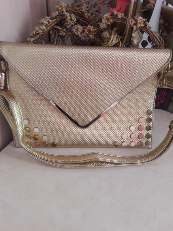 Сумочка золотистого кольору.Ширина-33см,висота-24см.Відправляю Новою і Укрпоштою після 100% оплати на картку.При купівлі двох і більше мов діють знижки.