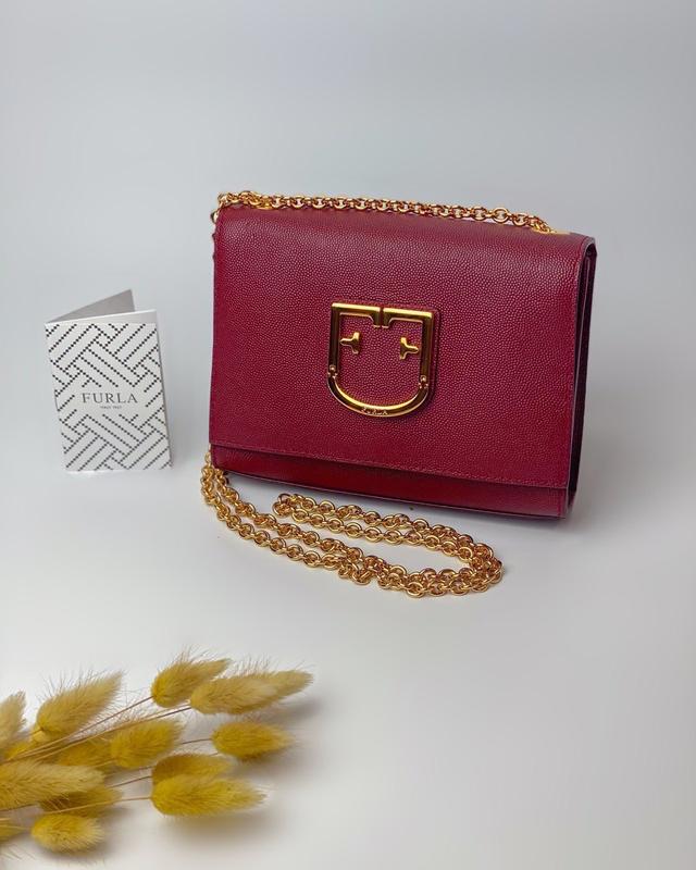 Сумочка Furla, оригінал, яскраво червоний колір, на золотому ланцюжку