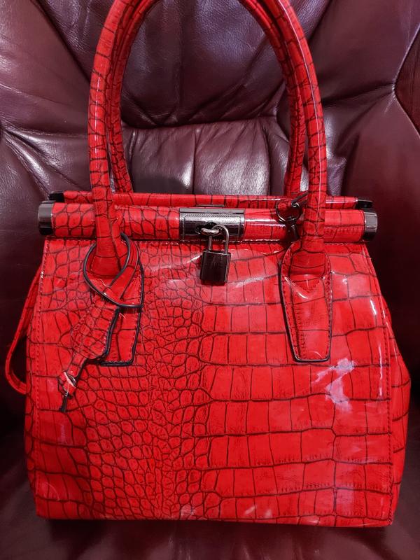Сумка кож. зам. Новая. Принт под рептилию. есть длинная ручка, замочек, ключик . Ширина дна - 12 см, длина -28,5 см, высота сумки - 26 см. Состояние новой.