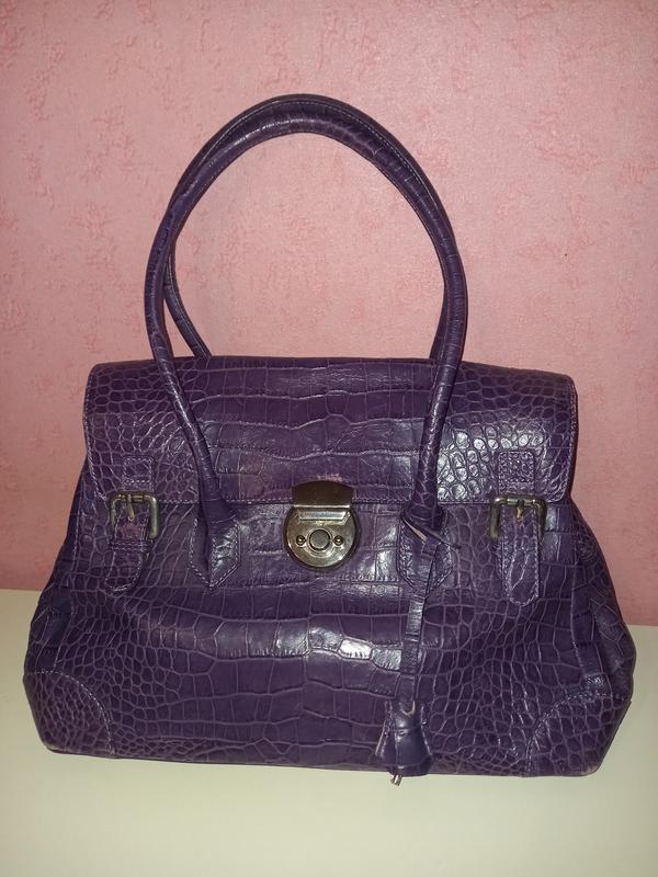 Розмір 33×26см, ширина по дну - 15см Сумка ідеальної якості, потрібно тільки підфарбувати кути і біля замку (на фото). Підкладка як нова. Тільки короткі ручки. Виробництво Італія.