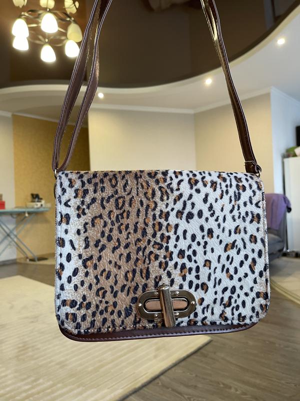 Леопард который всегда в моде. Одна из любимейших сумок💔 Леопардовый принт из какого то мягенького материала. Сумка в прекрасном состоянии, отдавала ее на реставрацию, сделали крепкие ручки. Внутри чистая, без нюансов. 1 большое отделение и 1 маленький карманчик. Длина ручки регулируется. Отдаю за символическую цену тк разгружаю гардероб. Ширина :26 см Высота : 22 см.