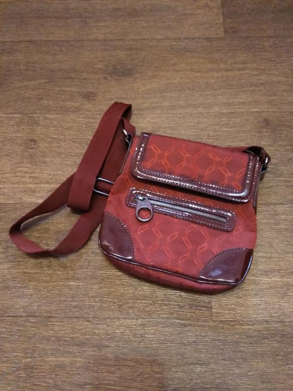 MNG Бордовая сумка с переливом и длинным ремешком Ремешок регулируется Текстильная модель с лаковыми вставками Снаружи карман на змейке Застегивается на кнопку Внутри одно отделение и кармашек на змейке Новая модель По всем дополнительным вопросам обращайтесь в любое время