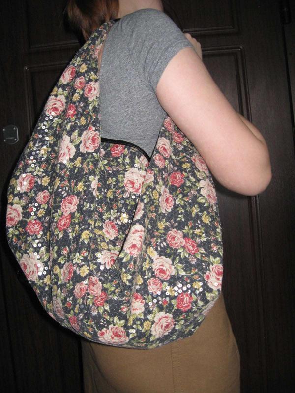 Яскрава сумка в квітковий принт з паєтками. Глибина сумки 35см.