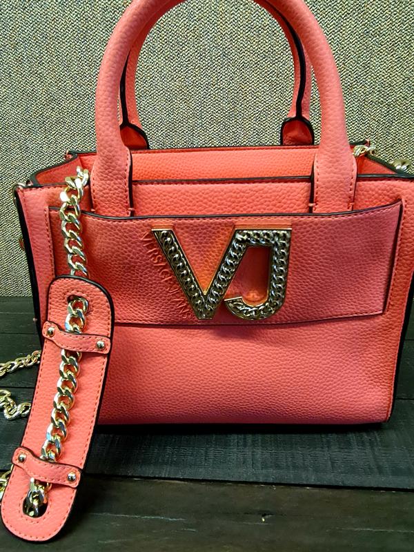 сумка розового цвета версаче джинс оригинал из качественного кожзама с короткими ручками и длинным ремешком- цепочкой на плечо