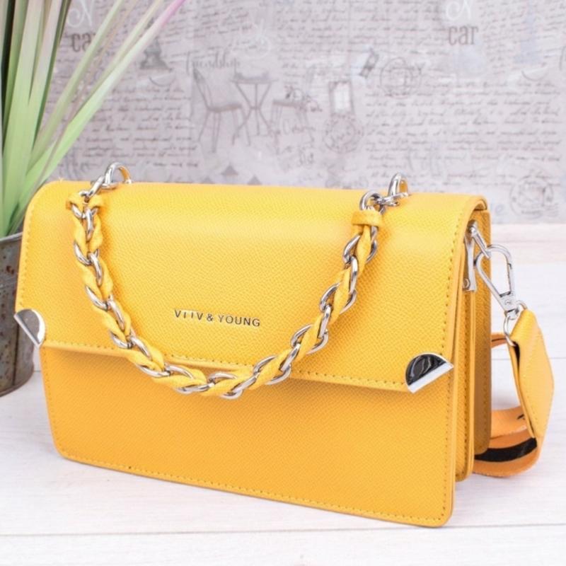 Жіноча жовта сумка Матеріал: Екошкіра Матеріал підкладки: Поліестер Кількість відділень: 2 Країна виробник: Китай Вид застібки: Кнопка Приблизна розмірна сітка: Виміри: висота: 13.5 см, ширина: 20.5 см, ширина дна-7 см, довжина ручок 48 див. Ціна:400