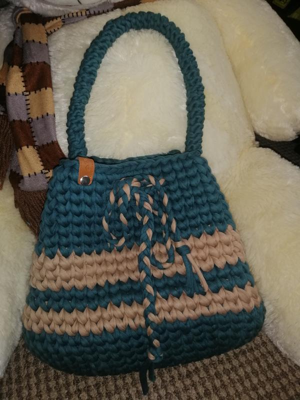 Продам сумку торбу ручної роботи. В комплекті коротка і довга ручка (через плече), без підкладки. Вгорі затягується. Колір темно зелений з бежевим.