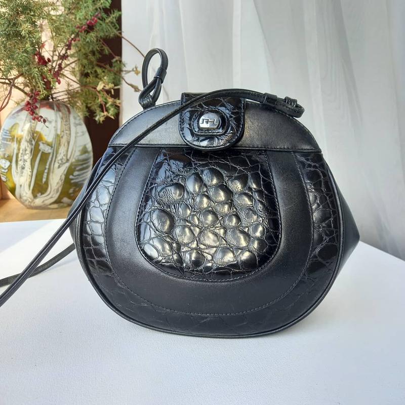 Шкіряна сумка, середина-замша, 22×22 см, ширина дна 6см, довжина паска 125 см, одне відділення з кишенею на замок, защібка магніт