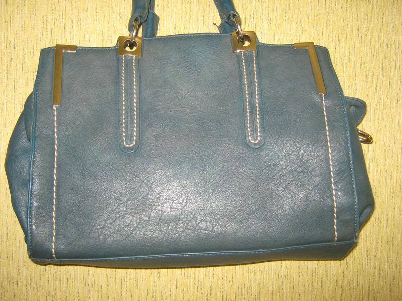 Сумка синьо-зеленого кольору. Оригінальна обделка, дуже стильно зроблені ручки про близько ручок. Довжина 37 см. висота 25 див. ручок 21 див.
