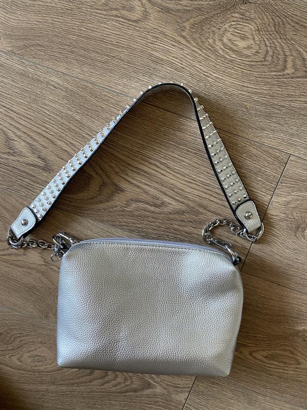 Містка срібляста сумочка на ремінці,одне відділення, розмір 22*30*10
