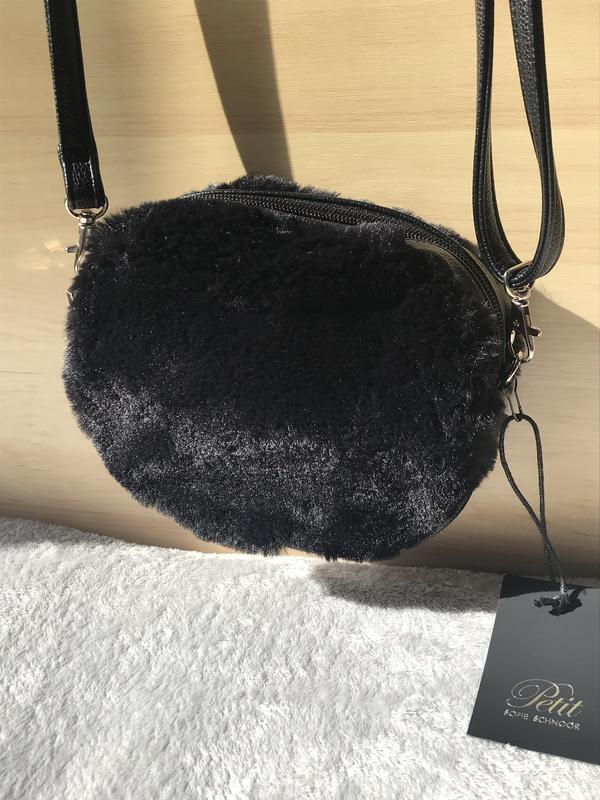 Дуже гарна і стильна сумочка з штучного хутра та еко-шкіри. На довгому ремені який регулюється. Розміри: Висота 14 см Довжина 17 см Ширина 4-6 см Довжина ременя 69-129 см Країна виробник Данія Petit by Sofie Schnoor Ціна 450грн