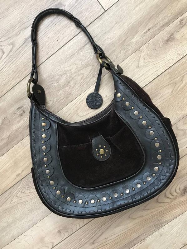Сумка в хорошому стані , шкіряна! Є незначні потертості . Шоколадного кольору, зручна та містка . Дві кишені з боків і одна спереду - закриваються на магніти. Всередині маленька кишеня і на телефон та загальне відділення .