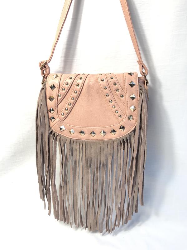 Крута пудрова сумка з бахромою Suite Blanco Довжина 23 см Висота 19 см Ширина 7 см Ручка 124 см Стан в цілому відмінний,є нюанс-розлучення на внутрішній стороні,і невеличка дірочка.Останні фото
