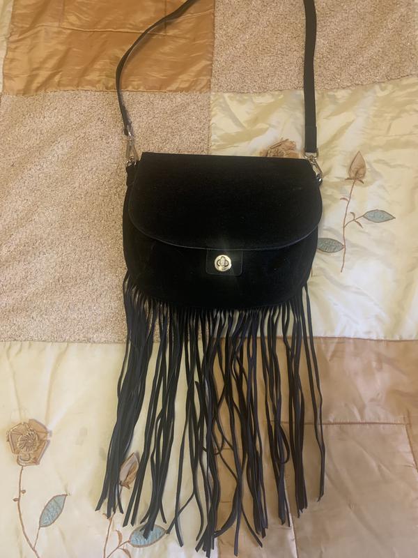 Сумка «під замшу» з бахромою. Відділення в сумці одне. Є нюанс - на фото 2 дві маленькі лысинки