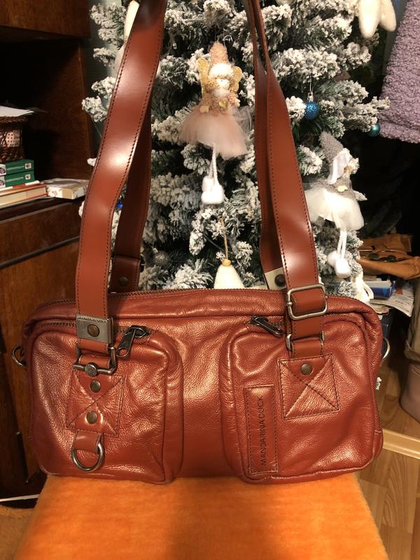 Стильна Сумка,з кишеньками,дуже цікавого кольору. Є деякі потертості.Заміри:ширина вверха-37см.,висота-23см.,ширина-35см.