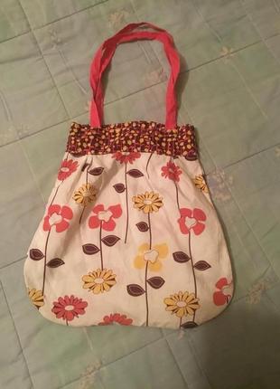 ЭКО сумка в хорошем состоянии. Ткань полиэстер, невесомая. Размер 39 на 36.