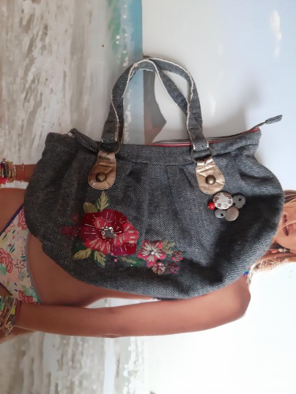 сумка від відомого британського бренду Accessorize, дуже оригінальна . Вся вишивка на сумці - ручна робота! є деякі дефекти - вказала на фото, в шкарпетці не кидається в очі. оконтовку з шкірозамінника ,можна акуратно обрізати.