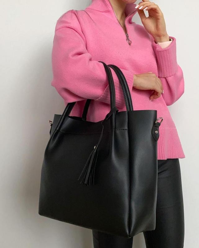 Модель 0019 Цена розница: 829 грн ▪️м'яка ▪️універсальна ▪️містка ▪️декорована знімним пензликом ▪️одне велике відділення (на підкладці) ▪️є внутрішні кишені (одна кишеня на блискавці, одна обрізна) ▪️є кишеня на блискавці з заднього боку сумки ▪️ручки: короткі ▪️знімний довгий ремінець у комплекті ▪️матеріал: структурна екошкіра під рептилію, гладка екошкіра Розмір: 30*29*14 см Колір: чорний, чорний + червоний, чорний під рептилію
