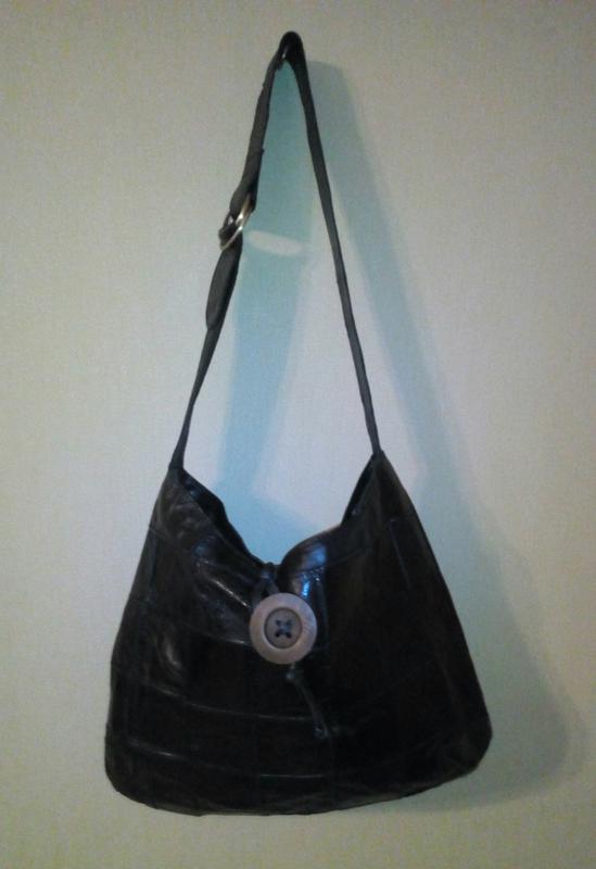 Шкіряна сумка виконана з шматочків шкіри дуже легка , сумка на одне відділення , заміри довжина 45 см, висота 36 см, ручка 88 см, можна регулироть на меншу довжину.