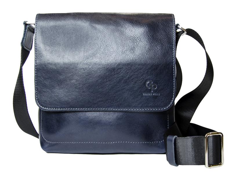 Сумка синя чоловічий зі шкіри grande pelle, сумка месенджер синя шкіряна через плече, сумк...