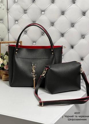 🛑В НАЯВНОСТІ 🛑 Комплект сумка+клач Код 4331 Шкірозамінник Сумка : 30х25 Одне відділення на блискавці. Клатч: 18х14 Одне відділення на блискавці. В комплекті один довгий ремінець (140 см).