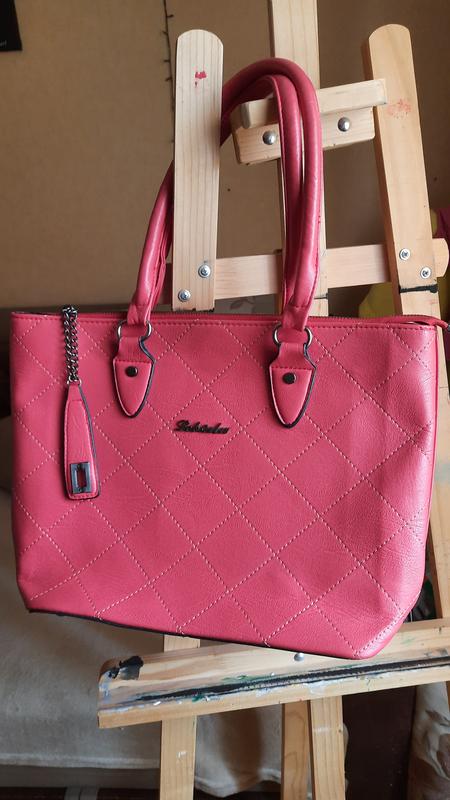 Сумка б/у, але в прекрасному стані, підкладка, дно цілі, на фото видно. Колір - малиново-червоний на першому фото максимально наближено передача кольору Дуже зручна, яскравий акцент на літо! Ширина: 38 см Висота 26 см Довжина ручки 23 см Ширина дна-20 см