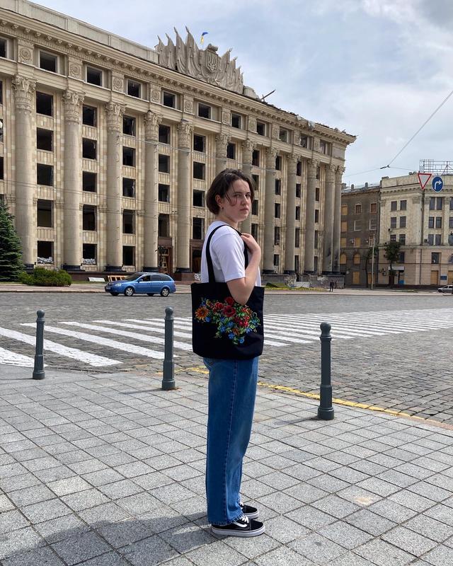 У серці Харкова, зі своїм розбитим. Стою. Ручна праця. Бісер. 35х36,5 см. «Надія на щасливе майбутнє» - шопер Ручна праця. Бісер. 35х36,5 см. Зручний карман всередині. частина грошей іде ЗСУ💙💛 разом до перемоги!🇺🇦