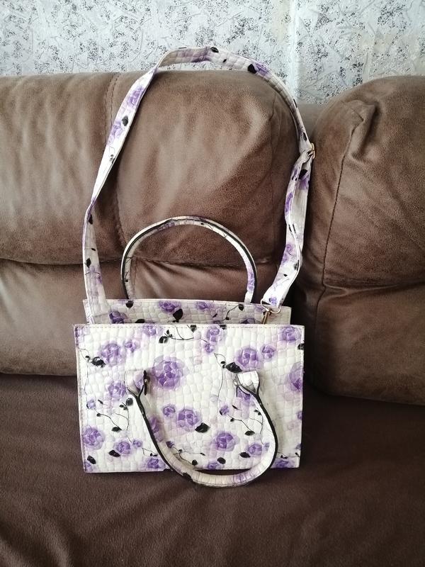 Женская сумочка, есть длина ручка, которая регулируется и её можно отстегивать. Два отделения и посередине на молнии. Состояние видно по фото. Немного торг уместен.