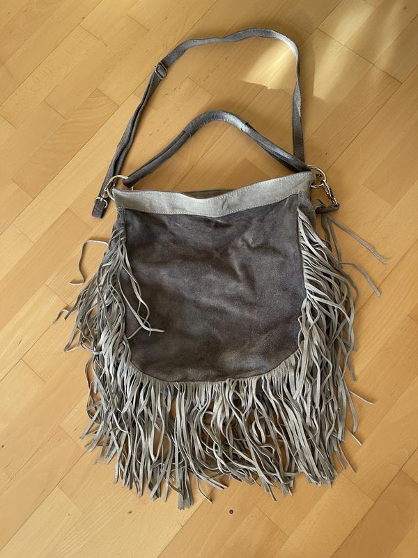 Сумка натуральный замш 37* 36 см. Один отдел. Средняя и длинная ручки,