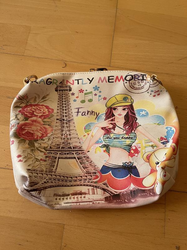 Маленька літня сумочка 25*18*8 див. Замінник шкіри. Ручка загублена, трохи забруднена підкладка. Кільця для ручки є. Можна використовувати як косметичку.