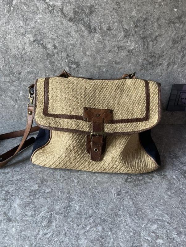 Сумка через плече Massimo Dutti з твіду, натуральної коричневої шкіри і темно-синього оксамиту. У відмінному стані. Пряжка насправді має застібку-засувку для легкого розстібання.