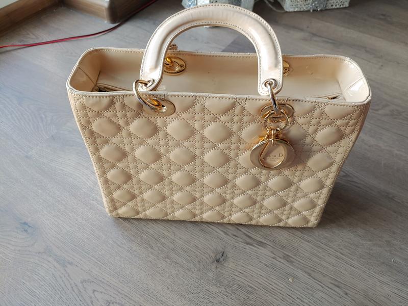 сумка Диор лаковая кожа бежевый цена такая потому что срезаны бирки внутри но сумка оригинальная