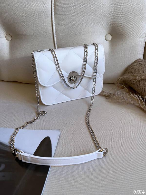 Сумка клатч на ланцюжку Якість топ! Каркасна, легка Турецька еко шкіра гладка Одне відділення з підкладкою Всередині кишеня на блискавці та кишені для дрібниць Клапан на застібці Довгий ланцюжок (133 см) перетворюється у дві ручки Висота ручок - 34 см Фурнітура світлий та темний нікель 21,5*16,5*7 см Код 01714 Кольори: білий, чорний, св беж