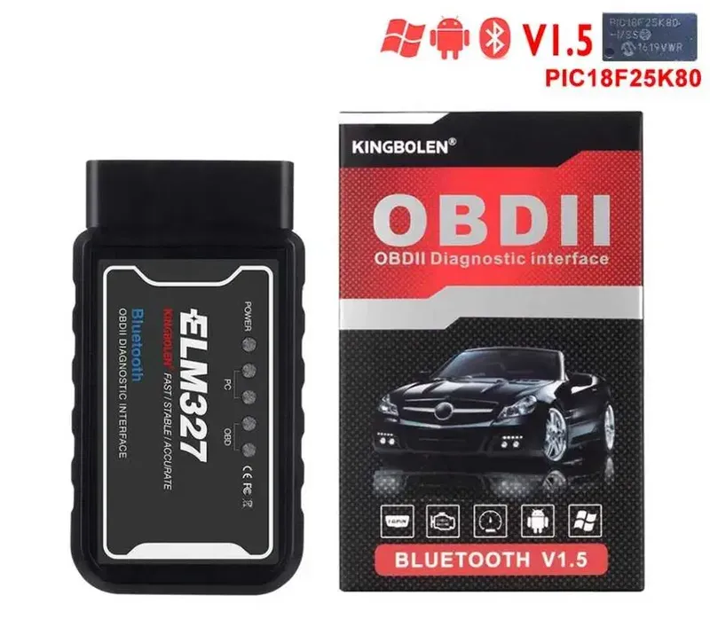 Автосканер KINGBOLEN OBD-II (OBD2) адаптер для діагностики PIC18F25K80 FW V1.5 Full — мультимарковий OBD-2 адаптер, що забезпечує діагностику автомобіля через OBD-II роз'єм 16 pin за допомогою бездротового зв'язку Bluetooth. Високу популярність сканер ELM327 отримав через свою універсальність і роботу з усіма ОБД2 протоколами (ISO 9141, KWP2000, SAE J1850PWM і VPM), але найбільшою перевагою є підтримка CAN-шини, якою зараз обладнані всі сучасні автомобілі. Інтерфейс Bluetooth дає змогу використовувати ELM327 не тільки з ПК або ноутбуком, але і з КПК, мобільними телефонами або планшетами. Адаптер призначений для діагностики двигуна, читання помилок, переглядів параметрів Live Data, зняття індикації Check Engine. ELM327 підтримує всі протоколи OBD-II: Остання версія PIC18F25K80 FW V1.5 підтримує всі протоколи OBD-II. Ґаджет бездротовий і працює тільки через Bluetooth з іншим пристроєм (телефон, планшет, ноутбук тощо). На диску програми для синхронізації Вашого пристрою з OBD II. Підтримує Android, iOS, WinXP, Win7, Win8 і Linux. KINGBOLEN ELM327 OBD-II: Частота процесора: 4 МГц Розуміння і виконання команд ATPPS і ATAL. Підтримка всіх OBDII протоколів у такий спосіб: 1.SAE J1850 PWM (41,6 кбод) 2.SAE J1850 VPW (10,4 кбод) 3.ISO9141-2 (5 бод ініціалізації, 10,4 кбод) 4.ISO14230-4 KWP (5 бод ініціалізації, 10,4 кбод) 5.ISO14230-4 KWP (швидка ініціалізація, 10,4 кбод) 6.ISO15765-4 CAN (11 біт ID,500 кбод) 7.ISO15765-4 CAN(29 бит ID,500 кбод) 8.ISO15765-4 CAN (11 біт ID,250 кбод) 9.ISO15765-4 CAN (29 біт ID,250 кбод) A.SAE J1939 CAN(29 бит ID,250 * кбод) B.USER1 CAN (11 * біт ID,125 * кбод) C.USER2 CAN(11 * бит ID,50 * кбод) Функції пристрою 1. Читає діагностичні коди несправностей, родові та за специфікацією виробника, показує їхнє значення (понад 3000 визначень загальних кодів у базі даних); 2. Скидає коди несправностей і прибирає помилку MIL («Check Engine»); 3. Показує дані датчика струму; 4. Показує оберти двигуна; 5. Показує розрахункове значення навантаження; 6. Показує температуру охолоджувальної рідини; 7. Показує залишок палива (під час показу його на бортовому комп'ютері); 8. Показує швидкість автомобіля; 9. Показує короткострокові викиди палива; 10. Показує довгострокове врівноваження палива; 11. Показує тиск у впускному колекторі; 12. Показує час розгону (0-60 км-год; 0-100 км-ч; и т.д.); 13. Показує час проходження траси (201 м; 402 м и т.д.); 14. Показує температуру впускного повітря; 15. Показує витрату повітря; 16. Показує абсолютні положення дросельної заслінки; 17. Показує дані кисневого датчика; 18. Показує стан паливної системи; 19. Показує тиск палива. Список авто, на яких працює прилад: Будь ласка, зверніть увагу, цей прилад не може використовуватися на дизельному двигуні! Mercedes Benz 2001/**********K (ISO) BMW X5 2002 (ISO) Chevrolet Aveo (ISO) Citroen C3 2004 (ISO) Daihatsu YRV 2005 (ISO) Daihatsu YRV Turbo 2006 (ISO) Fiat Tipo 2002 (ISO) Форд Новий Фокус 2006 (CAN) Honda Accord 2006 JDM (ISO) Honda Accord Euro R 2004 JDM (ISO) Honda City GD8 (ISO) Honda Civic ES 1.6A (ISO) Honda Integra Type R DC5 JDM (ISO) Honda Jazz 1,4 М (ISO) Hyundai Accent 2004 (ISO) Hyundai Getz 1.3A 2004 (ISO) Hyundai Getz 1,6 М 2004 (ISO) Hyundai Matrix 2004 (ISO) Hyundai Santa Fe 2.4A (ISO) Hyundai Sonata GLS (ISO) Hyundai Sonata 2005 (ISO) Hyundai Tuscani FX (ISO) Kia Carens 2005 (ISO) Kia Magentis 2005 (ISO) Kia Rio LS (ISO) Kia Sorento позашляховик 2005 (ISO) Lexus ES300 Mazda 2 (CAN) Mazda 5 (CAN) Mazda 6 (CAN) Mazda Premacy 2001 (ISO) Mazda RX8 (CAN) Mitsubishi Colt 2003 (ISO) Mitsubishi Colt Plus 2005 (ISO) Mitsubishi Eclipse (GST Turbo автомобілів можуть бути перевірені на 1995-2000 року; RS/GS 1994-1996 GS все може зробити; Turbo автомобілів за 1996-2000 рік, тільки швидкість і TPS, може очистити діагностичні коди несправностей) Mitsubishi Lancer Evolution IX 2006 (ISO) Mitsubishi Pajero 3.5 V6 2006 (ISO) Nissan Sunny B14 (