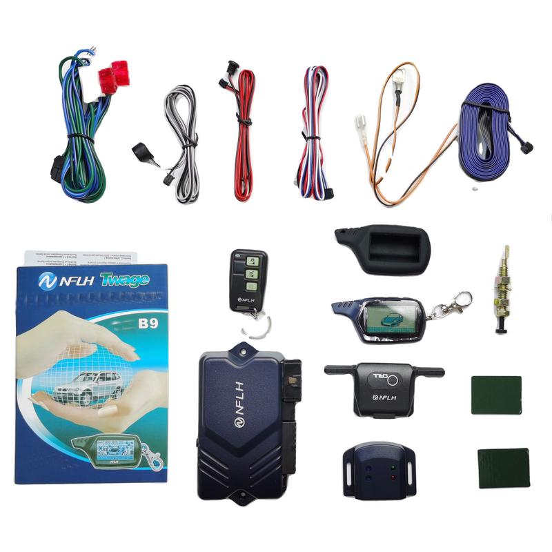 Сигнализация автомобильная FLT Twage B9 -- это современная охранная система с двусторонней связью и дистанционным запуском двигателя, предназначенная для установки на любые автомобили с бензиновым или дизельным двигателем, с механической или автоматической коробкой передач. Благодаря использованию оригинального динамического кода радиоуправления, система надежно защищена от перехвата и взлома. Система контролирует охраняемые зоны автомобиля: двигатель, двери, капот, багажник, стояночный тормоз, кузов, колеса, окна и зажигание. При срабатывании датчиков в режиме охраны сигнализация включает световую и звуковую индикацию, а также блокирует двигатель, сохраняет блокировку даже при попытке демонтажа устройства. Особенности дистанционного запуска двигателя включают: запуск по команде с брелка, автоматический запуск в установленное время, а также периодический запуск по таймеру каждые 2, 3, 4 или 24 часа. Система работает на частоте 433.92 МГц, обеспечивая радиус действия брелка до 600 м в режиме передатчика и до 1200 м в режиме пейджера. Сигнализация оснащена пъезоэлектрическим датчиком удара, имеет рабочий диапазон температур от -40 до +85 °С, напряжение питания 9-18 В и потребление тока в режиме охраны менее 15 мА. Установка сигнализации проста и не требует сложных навыков. Комплектация: - Брелок ДУ с ЖК-экраном обратной связи - Брелок ДУ без обратной связи - Центральный процессорный блок управления - Антенна двухсторонней связи - Датчик удара - Комплект соединительных проводов - Памятка пользователя и инструкция на русском языке