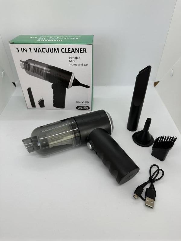 Автомобільний портативний бездротовий пилосос 3 in 1 Vacuum Cleaner USB ручний акумуляторний на 120 Вт -- це практичне рішення для чищення автомобіля. Пристрій має потужність 120 Вт і може видаляти пил, грудки та інші забруднення із салону автомобіля. Воно розраховане на просте та швидке усунення забруднень завдяки приголомшливій силі пилососа та потужній акумуляторній батареї. Пристрій обладнаний двома режимами роботи: ручний і автоматичний. У ручному режимі пилосос працює від акумуляторної батареї, а в автоматичному режимі пилосос може працювати від автомобільної мережі 12 В. Пристрій постачається з двома додатковими насадками для видалення пилу та бруду з куточків та інших важкодоступних місць. Також у комплекті постачання є USB-кабель для заряджання акумуляторної батареї. Автомобільний портативний бездротовий пилосос 3 in 1 Vacuum Cleaner USB ручний акумуляторний на 120 Вт -- це практичне та надійне рішення для чищення автомобіля. Він дає змогу легко видаляти пил і бруд із салону автомобіля й має два режими роботи. Пристрій постачається з двома додатковими насадками та з USB-кабелем для заряджання акумуляторної батареї. Характеристики: - Потужність: 120 Вт - Потужність всмоктування: прибл. 9000 Па - Акумулятор: 2000 мА*год * 2 - Час витримки: прибл. 40 хвилин - Вага: прибл. 300 г - Розмір: 20x14х4 см - Місткість пилозбірника: прибл. 200 мл Комплектація: - пилосос - насадка з пензлем - довга плоска насадка - кругла насадка - всмоктувальна головка - посібник китайською та англійською мовами - USB кабель для заряджання
