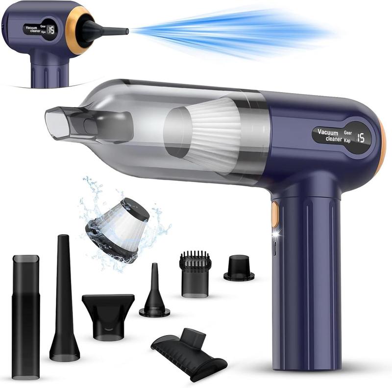 Описание - ⚡【Мощное всасывание для глубокой очистки】Оснащенный сверхмощным двигателем мощностью 80 Вт и максимальной мощностью всасывания 15000 Па, этот ручной пылесос может легко удалить пыль, крошки и шерсть домашних животных с ковров, диванов и матрасов. Беспроводной ручной пылесос также оснащен технологией шумоподавления с рабочим шумом ниже 70 дБ, что гарантирует минимальное беспокойство для вашей жизни и работы. - 💡【Светодиодная подсветка и цифровой дисплей】Мощный беспроводной автомобильный пылесос оснащен яркой светодиодной подсветкой и цифровым дисплеем, что делает его полезным для уборки темных углов, а также позволяет вам легко контролировать выбранную передачу и уровень мощности. Удобный дизайн нашего мини-пылесоса обеспечивает большое удобство для ваших задач по уборке. - 🍃【Портативный и беспроводной】Этот мощный беспроводной автомобильный пылесос может похвастаться легкой, беспроводной конструкцией, что позволяет легко хранить и переносить его. Эта функция повышает удобство во время уборки. Ручной пылесос предназначен для использования как в автомобилях, так и дома, позволяя вам без проблем чистить ковры, кухни, автомобили и труднодоступные углы. - 🔋【Быстрая зарядка и длительное время работы】Портативный пылесос оснащен встроенным аккумулятором емкостью 4000 мАч, обеспечивающим 20-30 минут работы в зависимости от выбранной передачи. Благодаря технологии быстрой зарядки он полностью заряжается всего за 2,5 часа. В комплект входит кабель для зарядки USB-C, что позволяет легко заряжать его с помощью автомобильного зарядного устройства, мобильного внешнего аккумулятора, ноутбука или другими способами. - ♻️【Многоразовый и моющийся фильтр】Этот беспроводной ручной пылесос оснащен высокоплотным фильтром HEPA, который более долговечен, чем стандартные фильтры. Одним щелчком фильтр HEPA можно легко разобрать для мытья. Однако его необходимо тщательно высушить перед повторной установкой в пылесборник. Регулярная очистка фильтра помогает поддерживать длительную производительность всасывания. - ⭐【7 аксессуаров】Автомобильный пылесос включает в себя 7 насадок для универсальной уборки. Щеточная насадка предназначена для ковров, диванов и автомобильных сидений; Удлиненная всасывающая насадка и щеточная всасывающая насадка удаляют волосы и пыль с автомобиля; Насадка для выдувания пыли очищает поверхности автомобиля; Насадка для надувания воздуха надувает воздушные шары или плавательные круги; Вакуумная насадка выполняет функцию вакуумного насоса; Насадка для фена эффективно сушит волосы.
