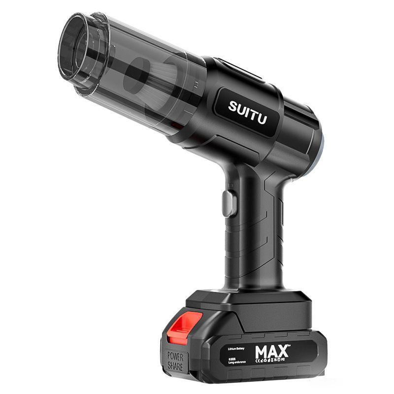 Портативный пылесос Suitu ST-6631C позволяет выполнять сразу несколько задач: - Пылесос для всасывания пыли и мелкого мусора; - Обратный выдув воздуха. Можно использовать, чтобы выдуть пыль из труднодоступных мест, или для накачки надувного матраса. Это не просто автомобильный ручной пылесос, это настоящее многофункциональное устройство. Вы сможете не только очистить автомобиль, но и выдуть пыль из труднодоступных уголков, а также надуть надувной матрас или кресло. Двигатель Высокопроизводительный двигатель обеспечивает мощный всасывающий эффект, позволяя очистить автомобиль от самых мелких до крупных частиц пыли. Емкость и заряд аккумулятора Заряда аккумулятора емкостью 48Wh хватает на долгое время. Невероятная мощность достигается благодаря использованию аккумулятора 21V. Использование Пылесос легко удаляет пыль и грязь с ковровых покрытий, отлично справляется с очисткой клавиатур от пыли, убирает шерсть домашних питомцев с любых поверхностей. Фильтрация и многократная промывка фильтра Экологический фильтр позволяет задерживать мельчайшие частицы пыли, что обеспечивает чистый воздух внутри автомобиля. Его можно многократно промывать и экономить на замене фильтров. Мощность и время работы Благодаря двигателю мощностью 120 Вт, пылесос легко справляется с любыми загрязнениями. Продолжительность работы устройства до 30 минут, уборку можно сделать без перерывов и ограничений. Многофункциональность Ручной пылесос - идеальный спутник для любителей активного отдыха на природе. Он может использоваться для раздувания костра на открытом воздухе, для накачивания надувного матраса на пикнике. Аксессуары и приспособления Пылесос оснащен различными аксессуарами, такими как длинная воздуходувная трубка для очистки уголков и щелей, большая трубка для удаления загрязнений и освежения поверхности, а также щетка для уборки полов, ковров и мебели. Мощность Пылесос обладает мощностью всасывания 5000 PA, что позволит вам быстро справиться с небольшими загрязнениями. Характеристики: - Номинальная мощность: 120 Вт; - Мощность всасывания: 5000 Па; - Время работы: до 30 мин; - Емкость аккумулятора: 48Wh, 21V; - Емкость пылесборника: 150 мл.