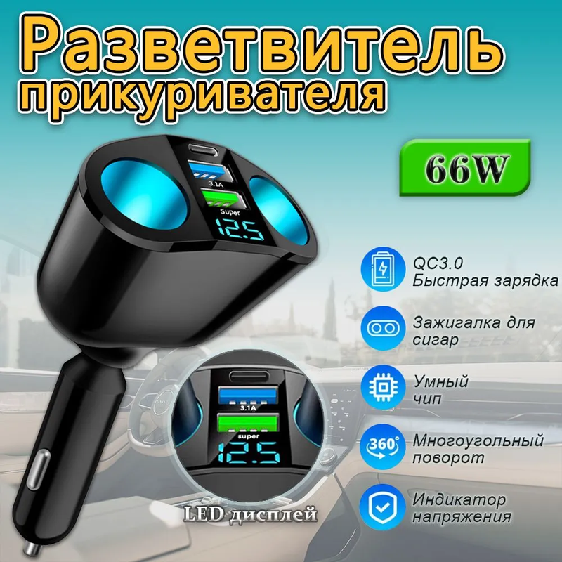 Разветвитель прикуривателя - это удобное устройство, которое предназначено для расширения функциональности автомобильного прикуривателя. Если вы хотите подключить несколько устройств одновременно, то этот разветвитель идеально подойдет для вашей задачи. Один из главных преимуществ этого разветвителя прикуривателя заключается в наличии USB-портов. Благодаря этому, вы сможете подключить и использовать различные устройства, которые работают по принципу USB-соединения. Больше не нужно беспокоиться о том, как подзарядить свой смартфон или планшет во время длительных поездок. С разветвителем прикуривателя вы всегда будете иметь доступ к необходимому заряду для ваших гаджетов Помимо возможности зарядки или подключения устройств через USB-разъемы, разветвитель также предлагает дополнительные порты, которые могут быть использованы для других целей. Будь то подключение фонаря или небольшого вентилятора, разветвитель даст вам больше возможностей для комфортного путешествия. Разветвитель прикуривателя оборудован защитой от перегрузок и короткого замыкания, что гарантирует безопасность для вас и ваших устройств. Вы можете быть уверены в том, что ваш разветвитель прикуривателя работает безопасно и надежно. Все эти преимущества делают разветвитель прикуривателя идеальным аксессуаром для всех автолюбителей. Теперь вы можете одновременно заряжать свой смартфон, подключать USB-устройства и использовать другие аксессуары, не покидая комфорта вашего автомобиля. Установите разветвитель прикуривателя сегодня и наслаждайтесь удобством и функциональностью. Комплектация Разветвитель в прикуриватель - 1 шт.
