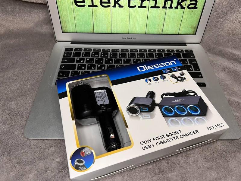Розгалужувач прикурювача на 4 виходи 120 W four socket usb+cigarette charger OLESSON CSL1527 ПРИКУРКА/USB/LED ПОДСВЕТКАКАБЕЛЬ 120W