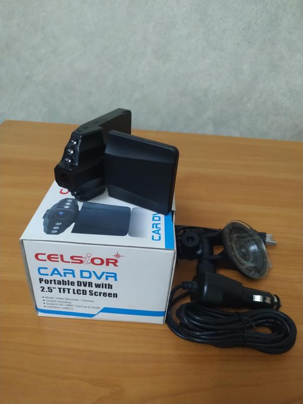 Технічні характеристики Celsior DVR CS-720p: Вбудована відеокамера, матриця CMOS 1/2 дюйми Кут огляду 120 градусів Роздільна здатність віде**********х480 Швидкість запису відео 30/20/10 FPS Вбудований мікрофон та динамік, 6-ть світлодіодів інфрачервоного підсвічування. Датчик освітленності. Циклічний запис. Карта пам'яті SDHC до 64Gb. 2.5'' TFT кольоровий поворотний екран. A/V-OUT. Автоматичний запис при подачі живлення. Автоматичне включення ІЧ світлодіодів. Формат стиснення MPEG4. Запис проводиться у форматі AVI. Читається будь-яким медіа-плеєром. Детектор руху. У меню можна задати тривалість роликів. На карту 32Gb вміщується близько 22 годин запису (720х480). Перегляд на власному екрані, комп'ютері, телевізорі. Li-Ion батарея дозволяє автономно працювати до 1.5 години. Реєстратор аналізує зображення. Якщо в кадрі відбуваються зміни, то включається 2-х хвилинний запис. Якісний запис звуку. Можливість вимикати мікрофон. Контроль процесу запису за допомогою світлодіоду. USB2 порт. Живлення+5 вольт. Габарити 100х50х20 мм. Вага 100гр. Комплектація: Відеореєстратор автомобільний. Адаптер для живлення від прикурювача. Кронштейн для кріплення на лобовому склі. USB-кабель. На даний час комплектація без акумулятора.