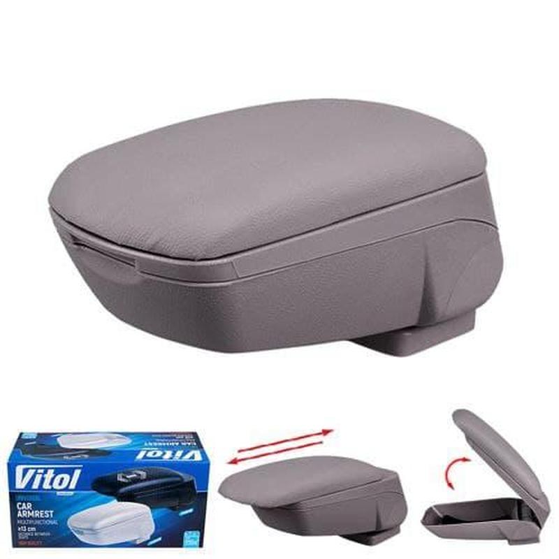 Підлокітник Vitol HJ48018G в сіром кольорі - це сучасна, стильна і безумовно функціональна модель автомобільного підлокітника. При проектуванні підлокітника велику увагу було приділено матеріалами, які тут на досить високому рівні і ергономіці, що значно підвищило комфорт використання виробу під час керування транспортним засобом. Для кришки підлокітника Vitol використовується оббивка з високоякісної еко- шкіри, яка залишає приємні тактильні відчуття, як у більш дорогого матеріалу. Кришка підлокітника має додатковий шар еластичного пінополіуретану, що додає м',якості і комфорту руці водія. Матеріал успішно протистоїть сонячним променям, пилу, бруду і показав високу стійкість при щоденному використанні. У моделі передбачений великий відсік для зберігання документів або необхідних авто-дрібниць. При необхідності верхню кришку підлокітника можна просунути вперед для більш комфортного положення. У внутрішньому відсіку присутня захисна накладка, що дозволяє зберігати в ньому будь-які металеві предмети і не переживати, що будуть утворюватися подряпини у внутрішньому просторі підлокітника. Установка підлокітника забере у вас мізерно малий час і не зажадає особливих навичок. Підлокітник забезпечений повним монтажних комплектом, що дозволить його встановити практично в будь-який автомобіль, в просторі між передніми, водійським і пасажирським, сидіннями. Підлокітник Vitol HJ48018G гарантує вам комфортне керування транспортним засобом, а також зняття статичного навантаження з ліктьового суглоба. З підлокітником Vitol ваш автомобіль стане більш вишуканим і індивідуальним.
