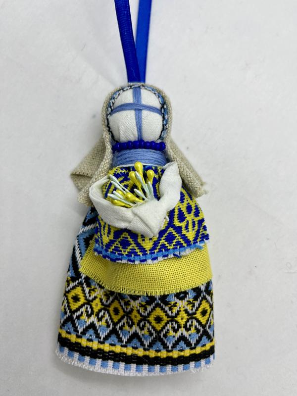Підвіска лялька мотанка 10 см жовто-блакитна народні сувеніри